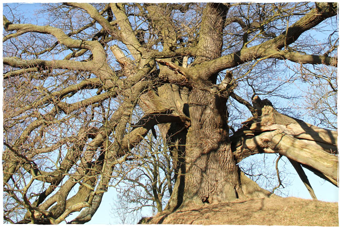 Die 700 Jahre alte Eiche, die in Suckow auf einem Hühnengrab steht